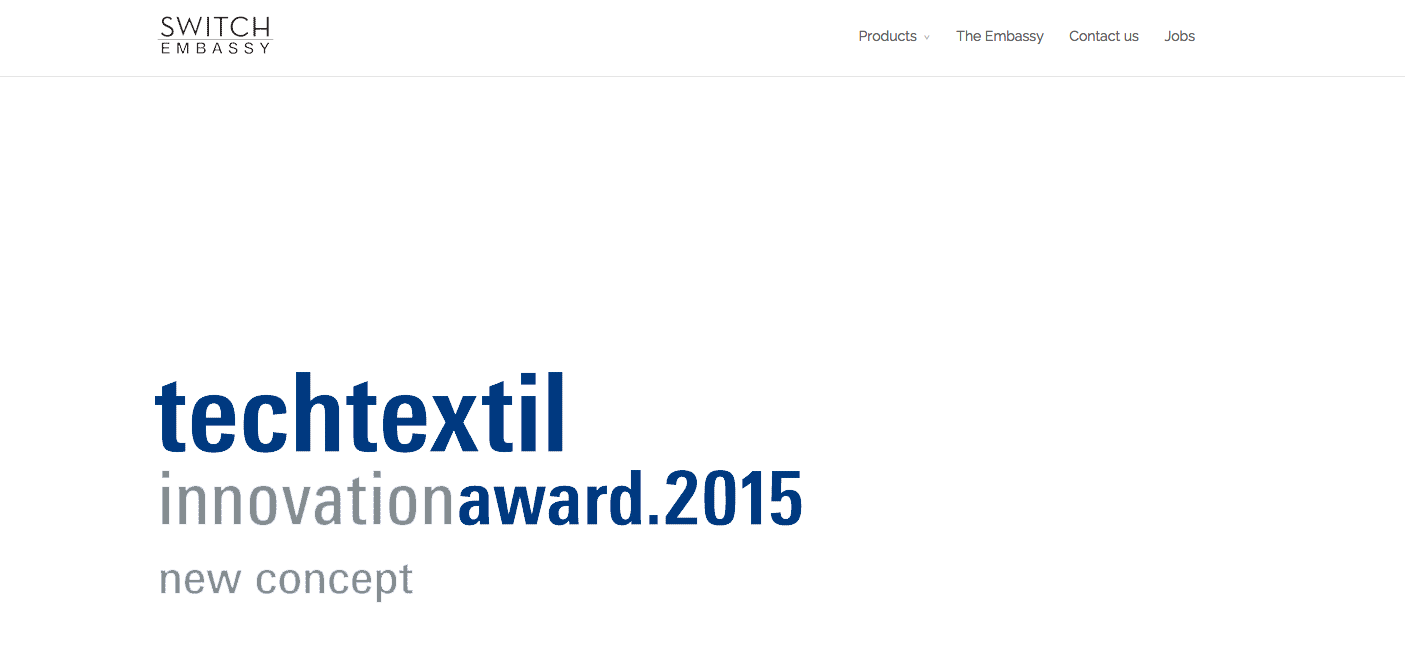 The world seems to be finding out: Switch Embassy won this year’s Techtextil Innovation award for best new concept.