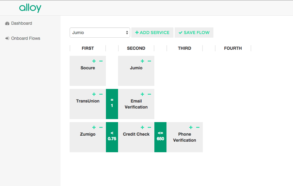Unlike “black-box” decision-ing engines, Alloy gives full control over which data sources are used and how they are applied so that companies can customize and optimize customer on-boarding. Adding, subtracting, or changing rules about how data sources are used is as simple as the click of a button, and what works or not is clearly analyzed and visualized at all times.