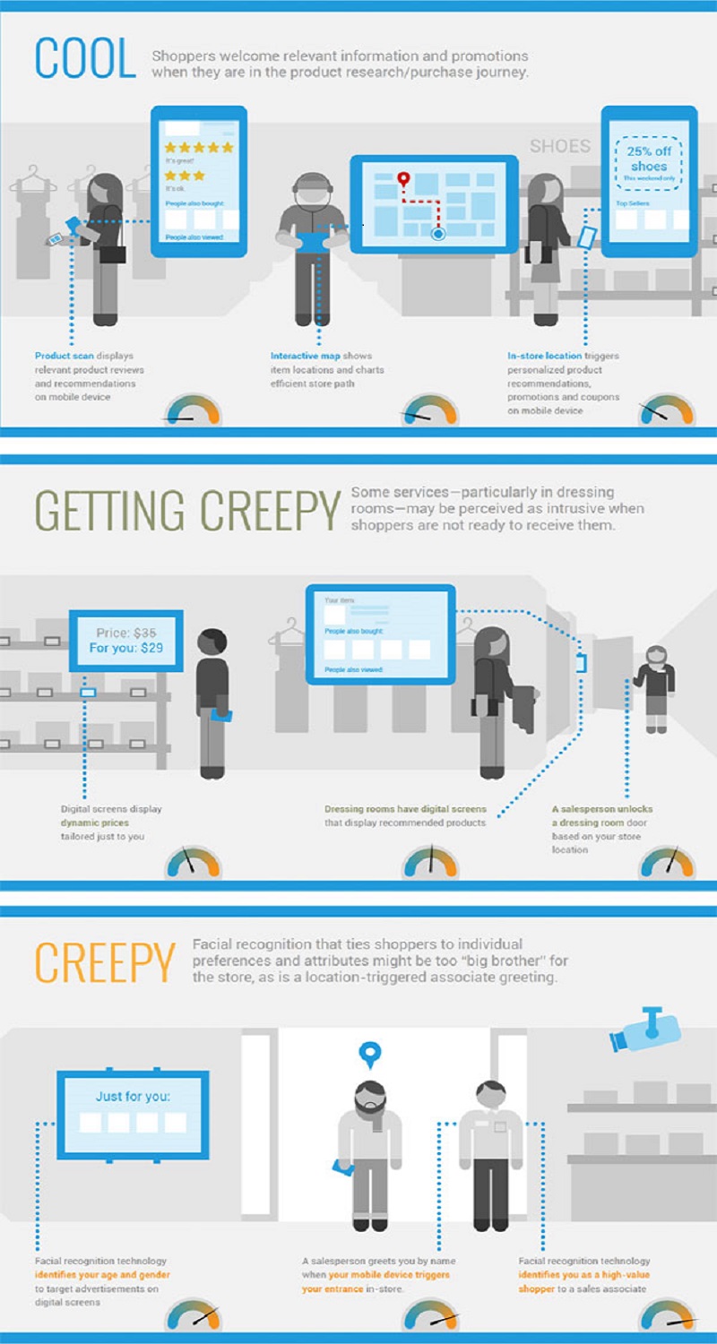 RichRelevance recently polled 1000 US consumers for their Creepy or Cool study, gauging consumer attitudes towards a variety of in-store digital tactics.