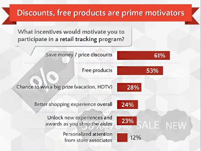 44% – in-store triggered personalized recommendations, promotions, and coupons pushed to a mobile device