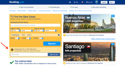 One successful example of this is Booking.com, where in order to generate a lead and store the email of their users, even those that are not necessarily ready to reserve a hotel yet, they offer to send out “secret” alerts with special sales and offers. This enables them to be in constant communication with their users until they are ready to make a purchase.