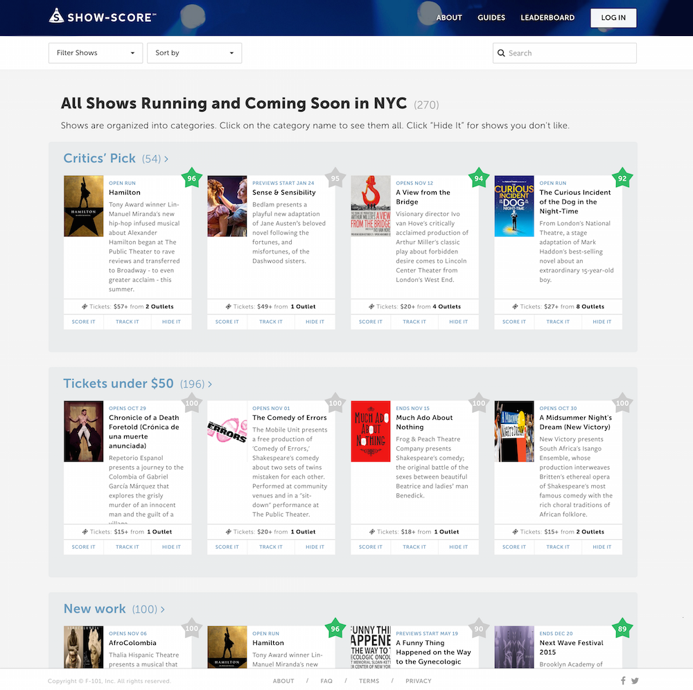 Show-Score is the ultimate guide for theater fans. It’s like a Rotten Tomatoes and Kayak for theater. In just 7 months, we already have more than 51,000 members. More amazing is that they have written more than 80,000 reviews of theater productions in New York – that’s six times more reviews than Facebook, TripAdvisor and Yelp combined in the same time period.