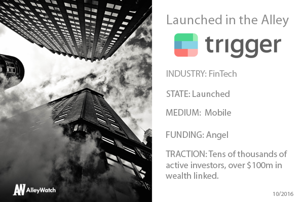 Trigger is the next generation investing platform that encourages investing through rules. We believe that triggers are the best way to remove emotion from investing, and we will motivate all investors to invest conditionally, and teach them the basics to become a more sophisticated investor through triggers. A ‘trigger’ monitors any type of financial data and delivers the result in real time. For example, if the Fed raises interest rates, then sell SPY, or IF oil trades below $20, buy Exxon. Our goal is to build the next generation brokerage business for individual investors, starting with a mobile first solution.