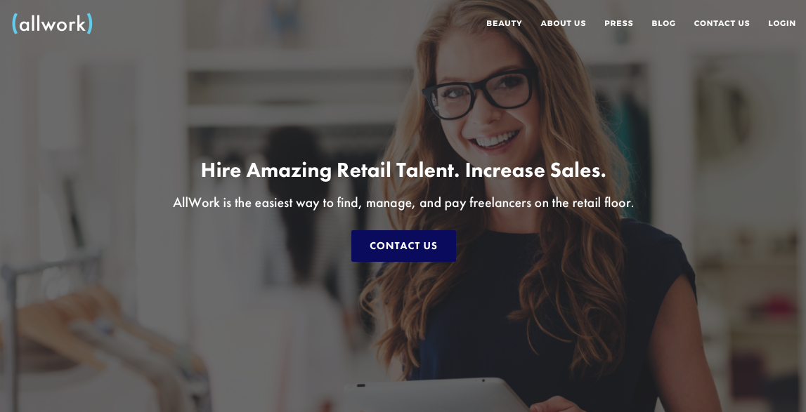 The AllWork platform provides an end-to-end solution for brands and retailers to efficiently source, manage and pay the in-store freelancer talent they rely on to drive sales at retail. Think sales associates, brand ambassadors, product merchandisers, trainers, and related sales functions. Imagine a brand being able to fill an open position anywhere in the US with the same efficiency of calling an Uber. The implications for the retail industry are enormous and extremely timely.