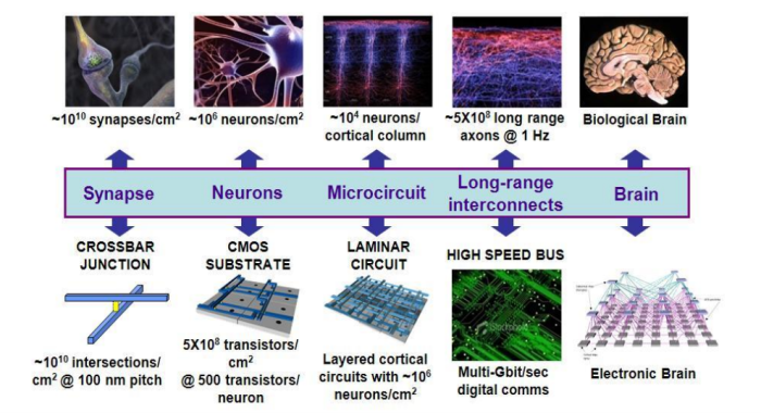 Semiconductors are in everything today, but if artificial intelligence is the future silicon may not be the most energy efficient means for compute power. Many designers are taking Ms. Yakoob’s approach by looking at biology or the brain as a model of future networks. The best known example is a DARPA-funded program, called SyNAPSE (Systems of Neuromorphic Adaptive Plastic Scalable Electronics), that is developing a neuromorphic machine technology that scales to biological levels. More simply stated, it is an attempt to build a new kind of computer with similar form and function to a mammal’s brain. The ultimate aim is to build an electronic microprocessor system that matches a brain in function, size, and power consumption. It could recreate 10 billion neurons, 100 trillion synapses, consume one kilowatt (same as a small electric heater), and occupy less than two liters of space.