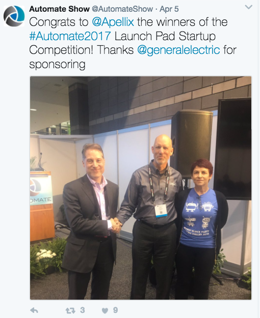 The excitement inside Chicago’s McCormick Center on Wednesday was palpable, as Automate 2017 brought together not just established industrial leaders but also innovative startups at The Launchpad Competition. Eight mechatronic entrepreneurs competed to impress the judges (Chris Moehle of The Robotics Hub, Steve Taub of GE Ventures, Melonee Wise of Fetch Robotics, and yours truly) in the hopes of winning a $10,000 prize from GE. Andra Keay of Silicon Valley Robotics, the afternoon’s Master of Ceremonies, kicked off the event by reminding the audience that some of the past participants have gone on to change the robotic landscape and raised tens of millions of dollars from investors. As a peak into the robotic crystal ball, please meet this year’s contestants:
