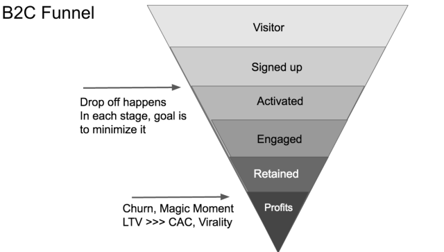 If you are running a B2C business, you need to master Activation and Retention. Activation typically includes getting a visitor to sign up and explore the product. Retention is focused on bringing t users back and making sure they continue to use the product.