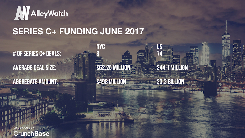 Average Series C+ round in NYC for June was $62.25M Tweet this