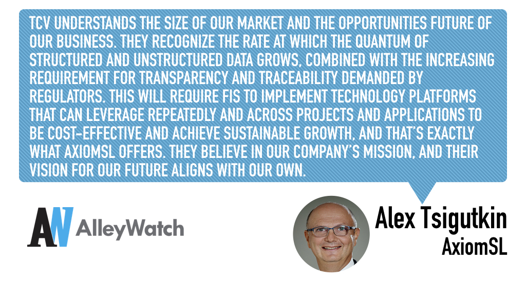 TCV understands the size of our market and the opportunities future of our business. They recognize the rate at which the quantum of structured and unstructured data grows, combined with the increasing requirement for transparency and traceability demanded by regulators. This will require FIs to implement technology platforms that can leverage repeatedly and across projects and applications to be cost-effective and achieve sustainable growth, and that’s exactly what AxiomSL offers. They believe in our company’s mission, and their vision for our future aligns with our own.