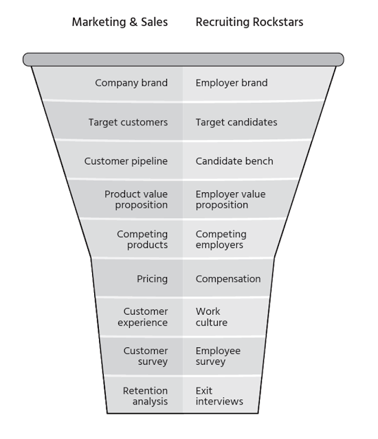 First of all, here is a good summary of the book, featuring the 10 Step Playbook for hiring rockstars. It compares what most recruiters do, and what rockstar recruiters do. Notice the key steps from starting with setting up an upfront scorecard for what will make a great candidate, focusing on the candidates with the right DNA, taking candidates for a test drive, paying special attention during onboarding and pruning mis-hires within the first 60 days, to name a few.