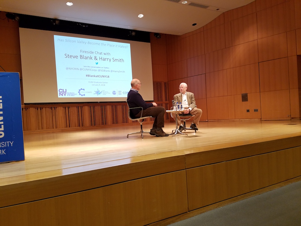 Serial-entrepreneur, Steve Blank, gave an inspiring “fireside chat” at CUNY on recently. Blank drew a large crowd filled of hopeful and engaged individuals, many of whom were keen on obtaining some insight on the startup world. His message seemed to transcend the stage and truly resonate with members of the audience. This could be attributed to the fact that Blank is an instructor and mentor. He’s been an adjunct professor at various, prestigious universities and created the ultra successful class Hacking for Defense at Stanford University. Despite his long list of achievements, Blank emitted a relaxed, approachable demeanor while offering credible advice on the nature of startups.