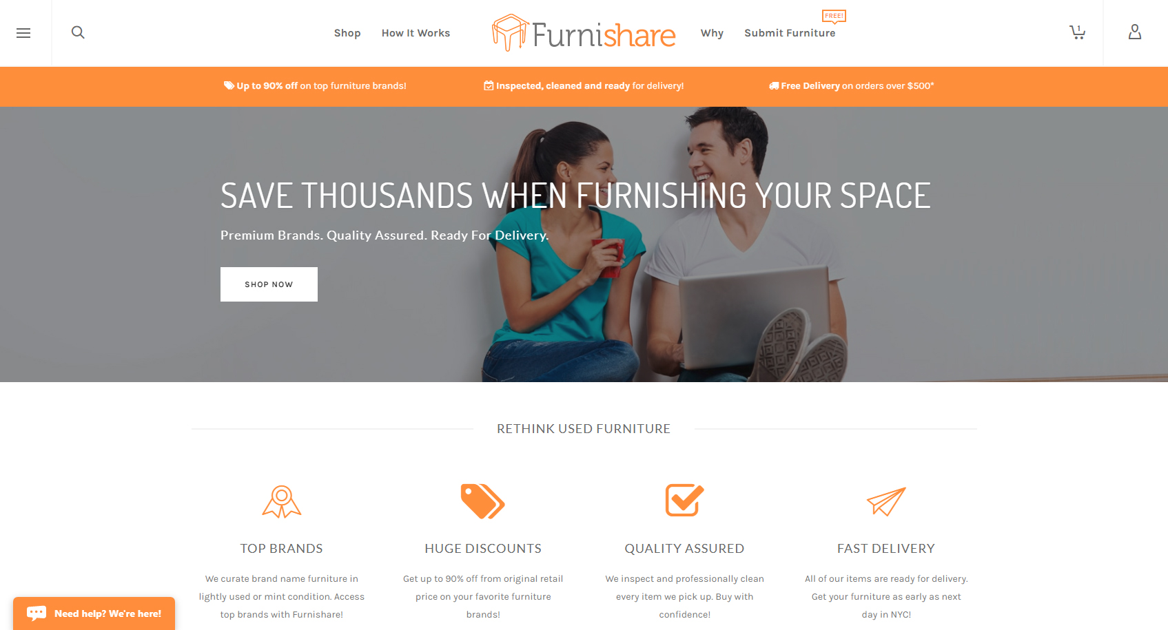 Furnishare is the easiest way to buy and sell furniture online. We pick up curated, top quality, brand name furniture from local owners and provide discounted sales online. Because we do all of the heavy lifting from pickup to delivery, we are the most convenient way to go green with used furniture.
