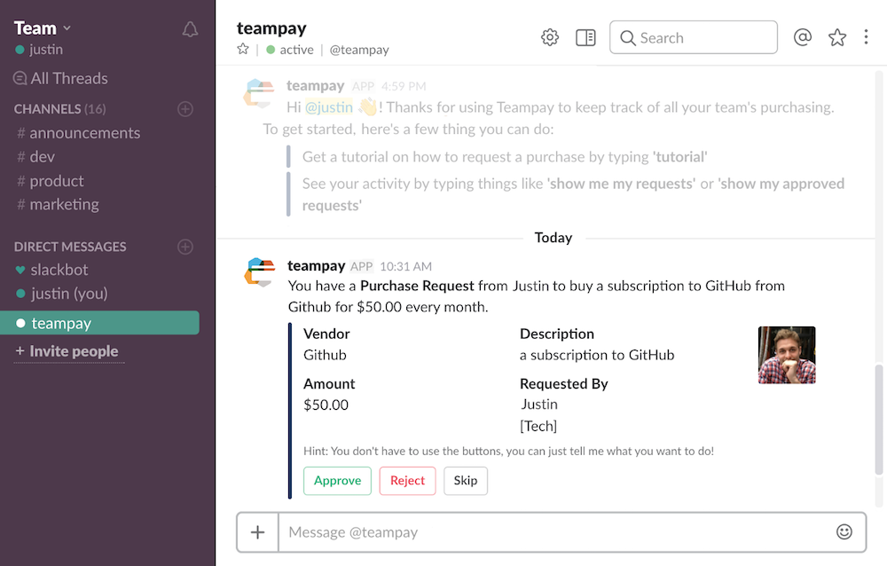 Our users forward us love letters all the time. Despite shifting to an approval-based system, we find the typical employee loves using Teampay because they can go about their job, without trying to track down someone to pay for something. Managers love it because they stay in control of spending with a simple button-click, and most importantly finance teams love it because they aren’t creating a bureaucratic goat rodeo later when trying to figure out who purchased what and why.