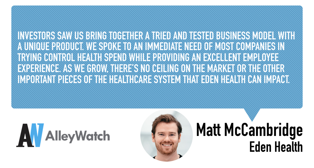 Investors saw us bring together a tried and tested business model with a unique product. We spoke to an immediate need of most companies in trying control health spend while providing an excellent employee experience. As we grow, there’s no ceiling on the market or the other important pieces of the healthcare system that Eden Health can impact.