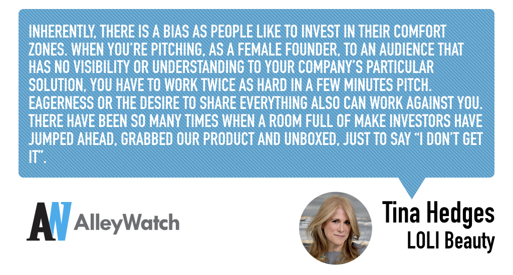 Inherently, there is a bias as people like to invest in their comfort zones. When you’re pitching, as a female founder, to an audience that has no visibility or understanding to your company’s particular solution, you have to work twice as hard in a few minutes pitch. Eagerness or the desire to share everything also can work against you. There have been so many times when a room full of make investors have jumped ahead, grabbed our product and unboxed, just to say “I don’t get it”. I’ve learned to control the experience as much as I do my words. Keep your power in the room. Hold some things back. Don’t be too eager to please.