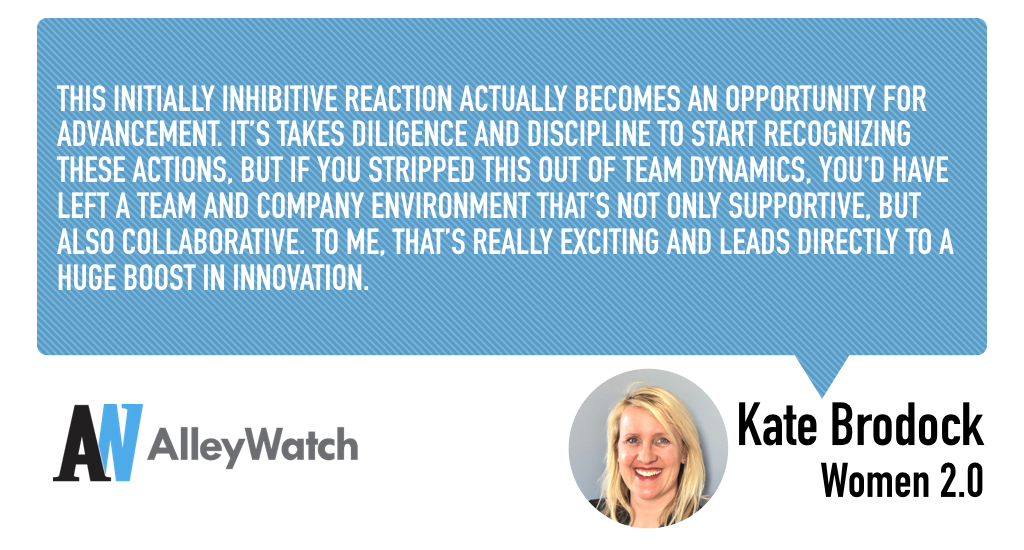 This initially inhibitive reaction actually becomes an opportunity for advancement. It’s takes diligence and discipline to start recognizing these actions, but if you stripped this out of team dynamics, you’d have left a team and company environment that’s not only supportive, but also collaborative. To me, that’s really exciting and leads directly to a huge boost in innovation.