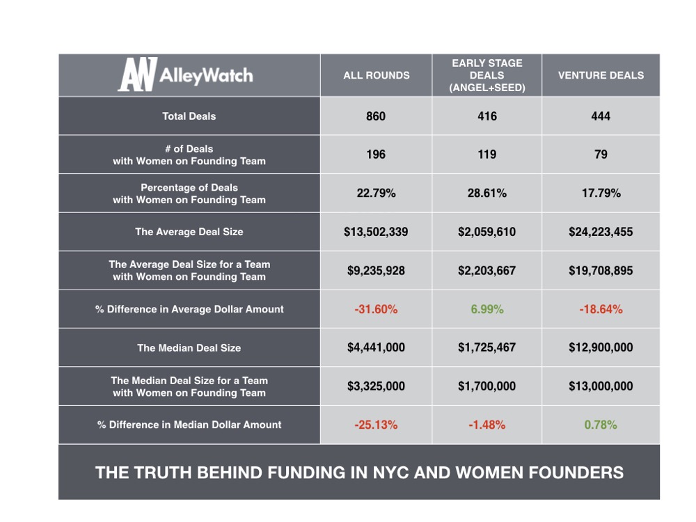 The average early-stage financing in NYC is $2.05M and $2.2M is there a female founder on the team Tweet This