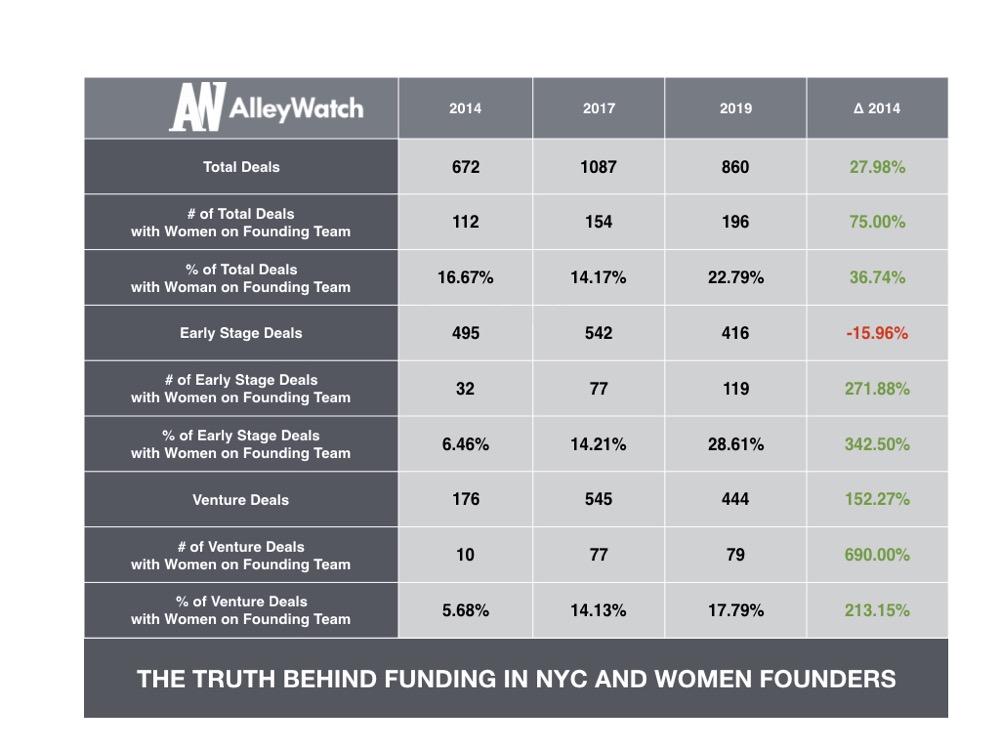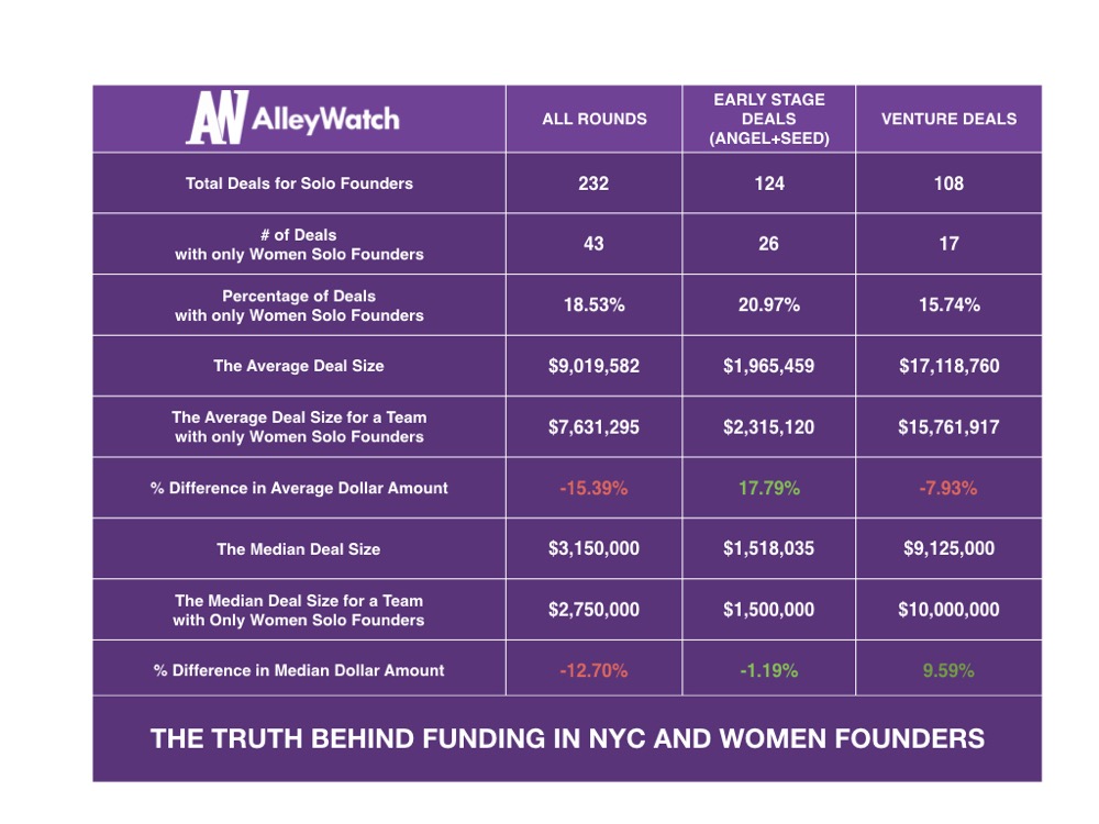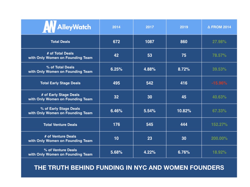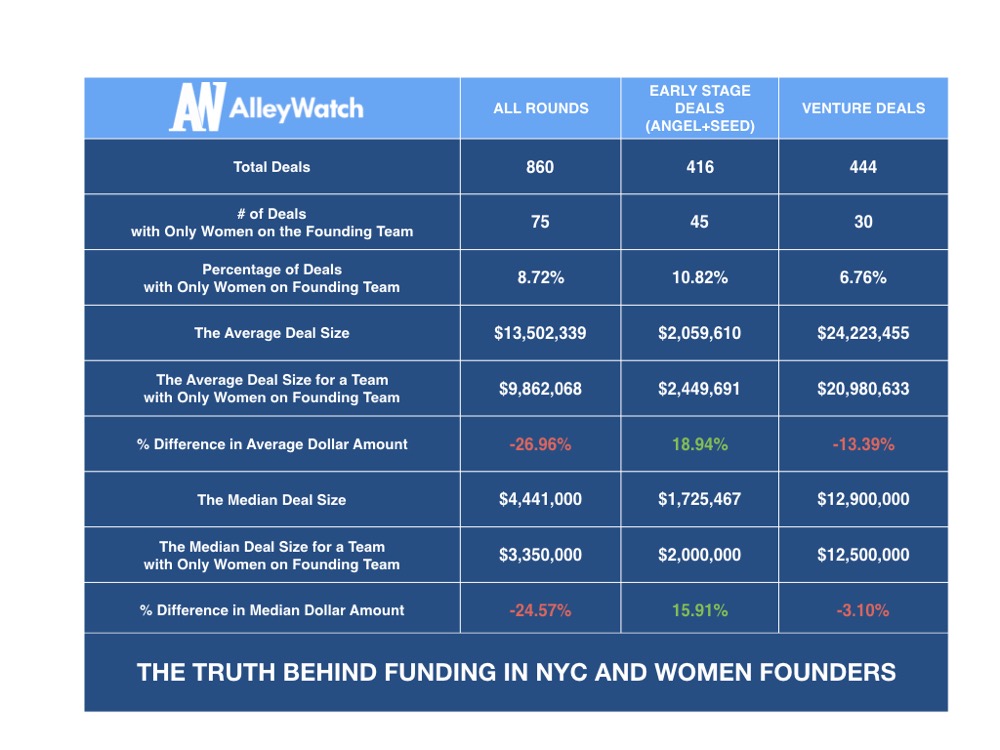 An early stage/seed round in NYC with an all-female founding team is 19% more on average Tweet This