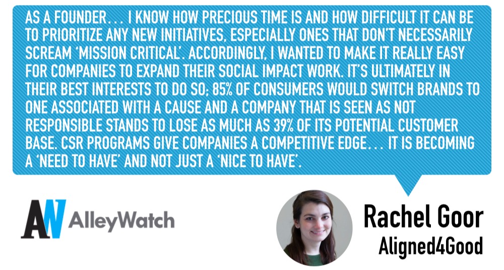 AlleyWatch spoke with Rachel Goor about cofounding a company that is giving startups the tools and platform to create the perfect CSR program.