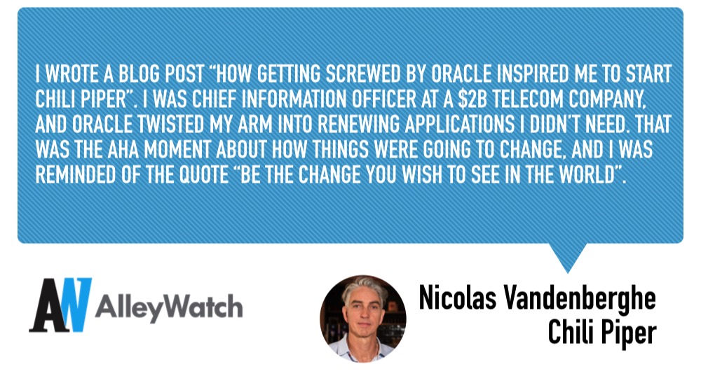 I wrote a blog post “How getting screwed by Oracle inspired me to start Chili Piper”. I was Chief Information Officer at a $2B telecom company, and Oracle twisted my arm into renewing applications I didn’t need. That was the aha moment about how things were going to change, and I was reminded of the quote “Be the change you wish to see in the world”.
