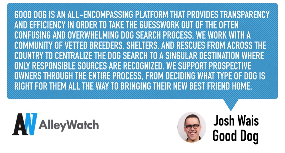 Unfortunately, everyone has heard countless tales of animal mistreatment at puppy stores.  While we may think that going to a breeder is better, the reality may differ. The same goes for adopting a dog from a shelter.  Good Dog is on a mission to provide transparency around the dog acquisition process. The newly-launched startup has built the first, expert-backed marketplace that allows people to get a dog from a vetted breeder, shelter, or rescue. Dog owners now have peace of mind by guiding and educating them throughout the process.