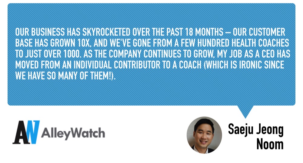 Our business has skyrocketed over the past 18 months – our customer base has grown 10x, and we’ve gone from a few hundred health coaches to just over 1000. As the company continues to grow, my job as a CEO has moved from an individual contributor to a coach (which is ironic since we have so many of them!).