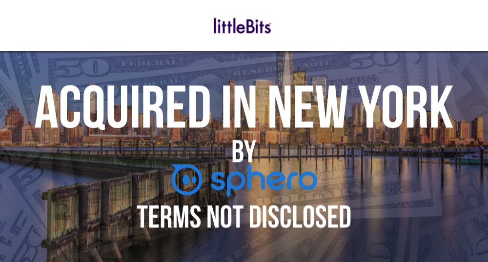Combined, the two companies have over 140 patents and have sold over $500M in kits and robots. “Sphero and littleBits are on a mission to make hands-on learning fun and memorable,” said Paul Berberian, Sphero’s CEO. “Together, we’re able to make an even greater impact by delivering the best possible solution — whether it is programming a robot to solve a maze or building an electronic music synthesizer. There are infinite learning possibilities — and they’re all fun.”