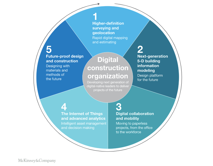 This “new era” was validated in a 2016 McKinsey & Company report that cited high-definition surveying and digitalizing workflow as the critical steps to modernizing the construction industry in order to keep pace with global spending on infrastructure, which is estimated to exceed 55 trillion by 2030. Historically, construction has lagged behind other industries in R&D spending, leading to low growth in productivity hovering at 1% a year for the last two decades. According to Ramzi Jreidini of DATACONOMY, “Construction is one of the most traditional industries in the world and ingrained attitudes and ideas are tough to dislodge. Management teams and company heads will need to be flexible and teachable if they are going to change and relearn entire processes.” However, in the past two years, the drive by builders for greater margins and hiring shortages has led to an uptick in IT spending. Jreidini stated that the results of these early deployments are shifting the industry mindset, “Change is always easier to implement when the potential results are backed up by data – and the data clearly shows that efficiencies will result from digitization and globalization.” In turn, these early implementations have sparked private capital to take notice with over a billion dollars of new investment in startups offering: collaborative software solutions, 3D visualization technologies, autonomous robots, drones, and other mechatronic inventions.