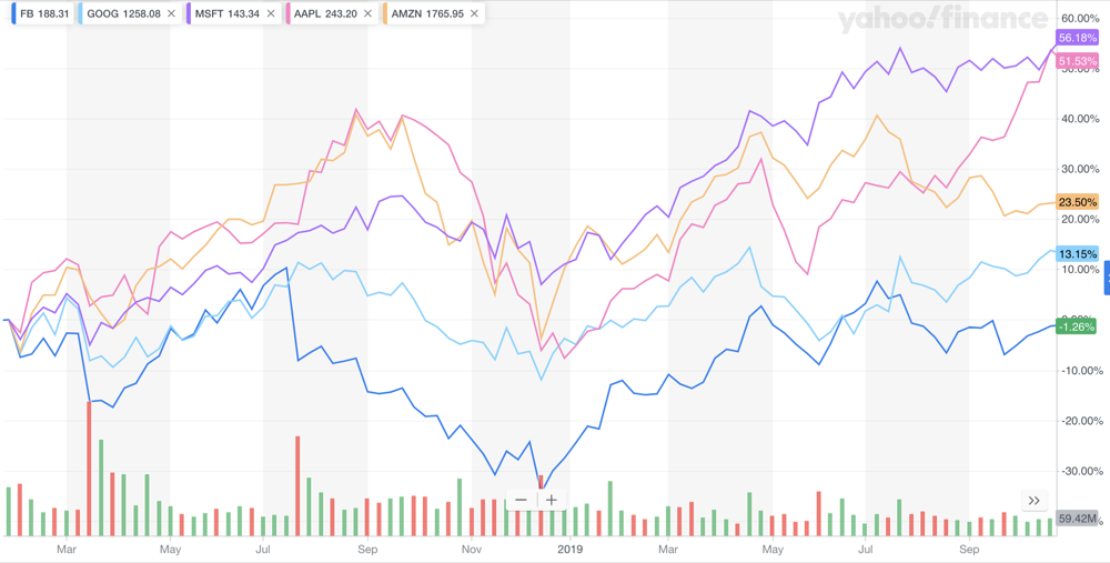 It’s been 21 months since that post, and Facebook shares have underperformed the NASDAQ (down 1% vs. a 14% gain for the NASDAQ). More telling, Facebook has dramatically underperformed it’s peer group (FAMGA), which averaged a gain of 36% over the past 21 months.