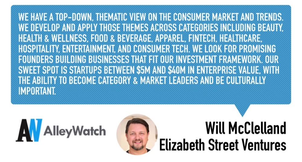 Welcome back to Inside the Mind of an NYC VC, a highly acclaimed series at AlleyWatch in which we speak with leading New York City-based Venture Capitalists. In the hot seat this time is Will McClelland, Cofounder and Partner at Elizabeth Street Ventures, the early-stage consumer-focused venture firm, investing out of its inaugural fund. Since its founding in early 2018, Elizabeth Street has backed several promising companies that include Museum of Ice Cream, Fitz Frames, High Court, OROS, and Tiny Organics. Will started his career in venture investing at Grace Beauty Capital and is responsible for investments in leading consumer brands such as ThirdLove, Harry’s, Glamsquad, Birchbox, Eloquii, and MM.Lafleur