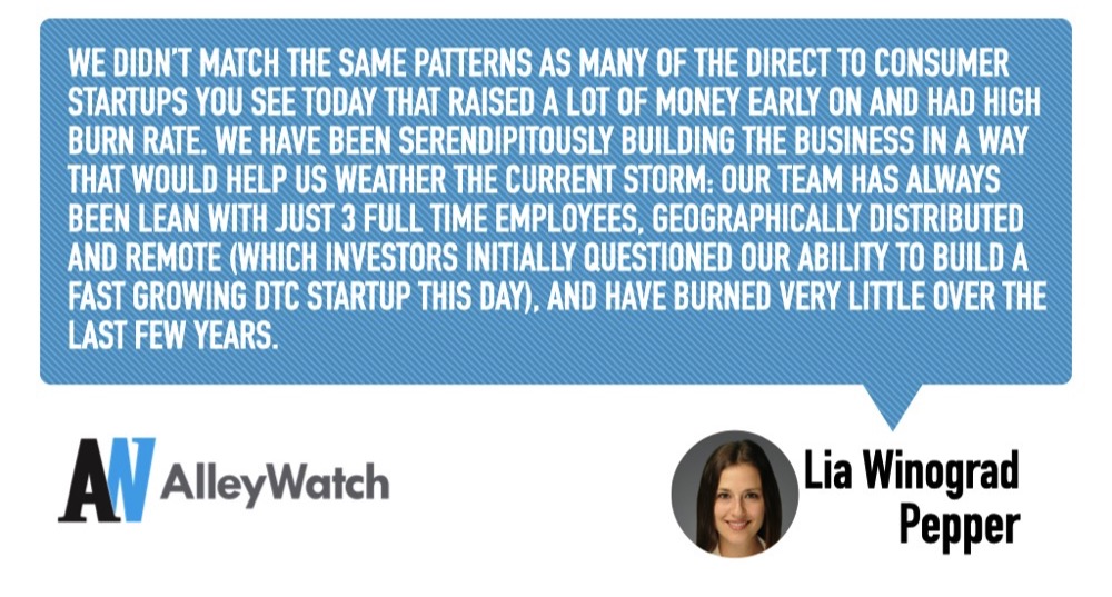 We didn’t match the same patterns as many of the direct to consumer startups you see today that raised a lot of money early on and had high burn rates. We have been serendipitously building the business in a way that would help us weather the current storm: our team has always been lean with just 3 full-time employees, geographically distributed and remote (which investors initially questioned our ability to build a fast-growing DTC startup this day), and have burned very little over the last few years.