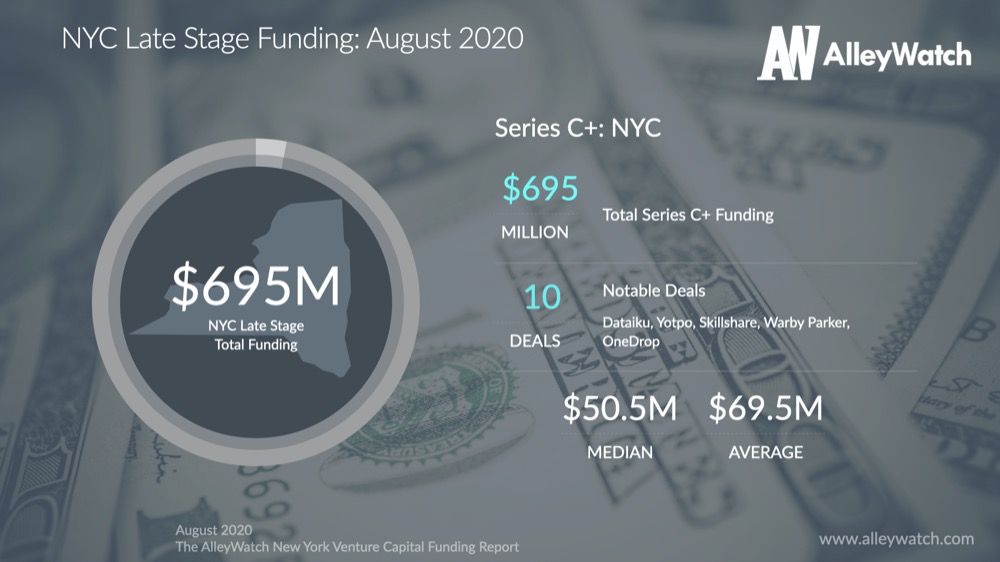 $694.7M was invested across Series C+ rounds in NYC in August Tweet This
