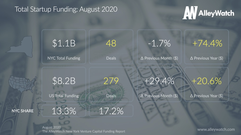 $1.1B was invested in NYC #startups in August in NYC across 48 deals Tweet This