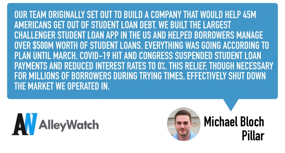 Our team originally set out to build a company that would help 45M Americans get out of student loan debt. We built the largest challenger student loan app in the US and helped borrowers manage over $500M worth of student loans. Everything was going according to plan until March. COVID-19 hit and Congress suspended student loan payments and reduced interest rates to 0%. This relief, though necessary for millions of borrowers during trying times, effectively shut down the market we operated in.