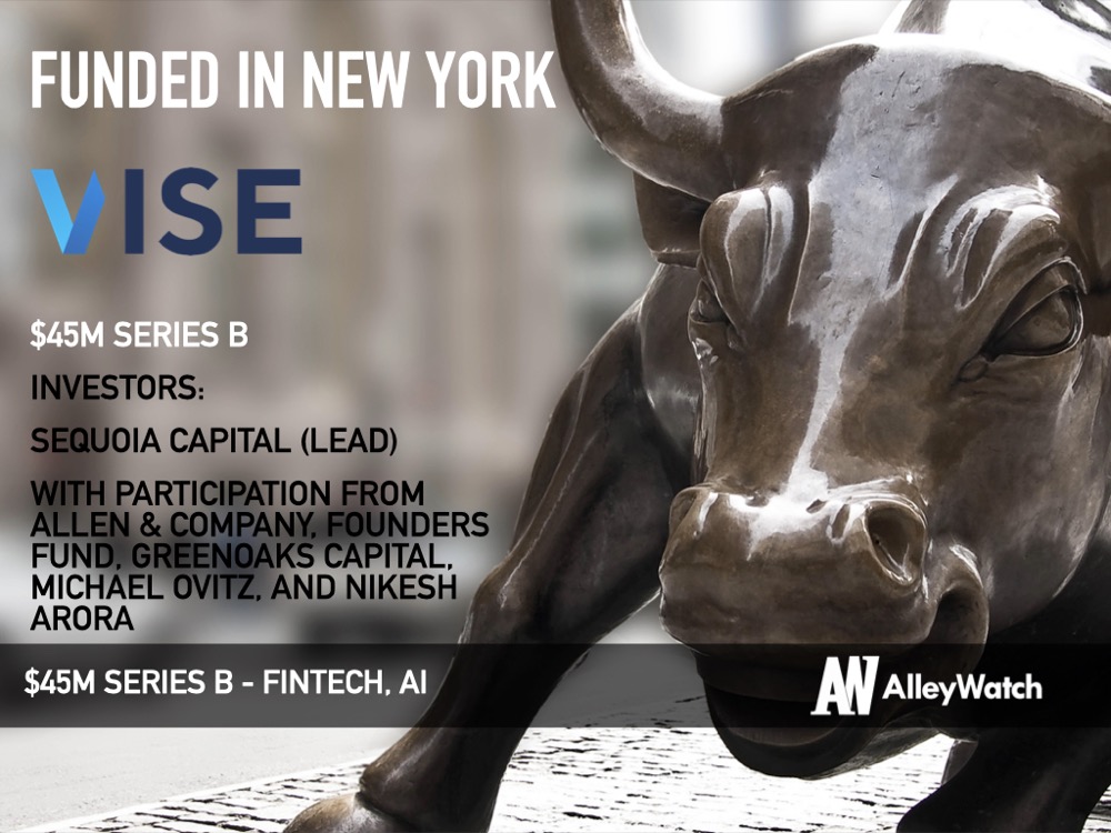 Vise closed a $45 million Series B funding round. Sequoia Capital led the Series B with participation from Allen & Company, Founders Fund, and Greenoaks Capital and from Michael Ovitz and Nikesh Arora, CEO of Palo Alto Networks, who will be joining as advisors.