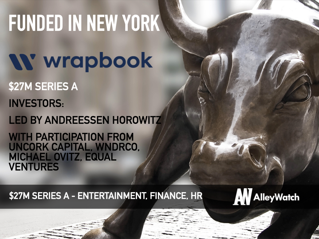 Wrapbook raised a $27M Series A. The round was led by Andreessen Horowitz, with participation from Equal Ventures and Uncork Capital, as well as from WndrCo (the investment and holding company led by Jeffrey Katzenberg) and from CAA co-founder Michael Ovitz.