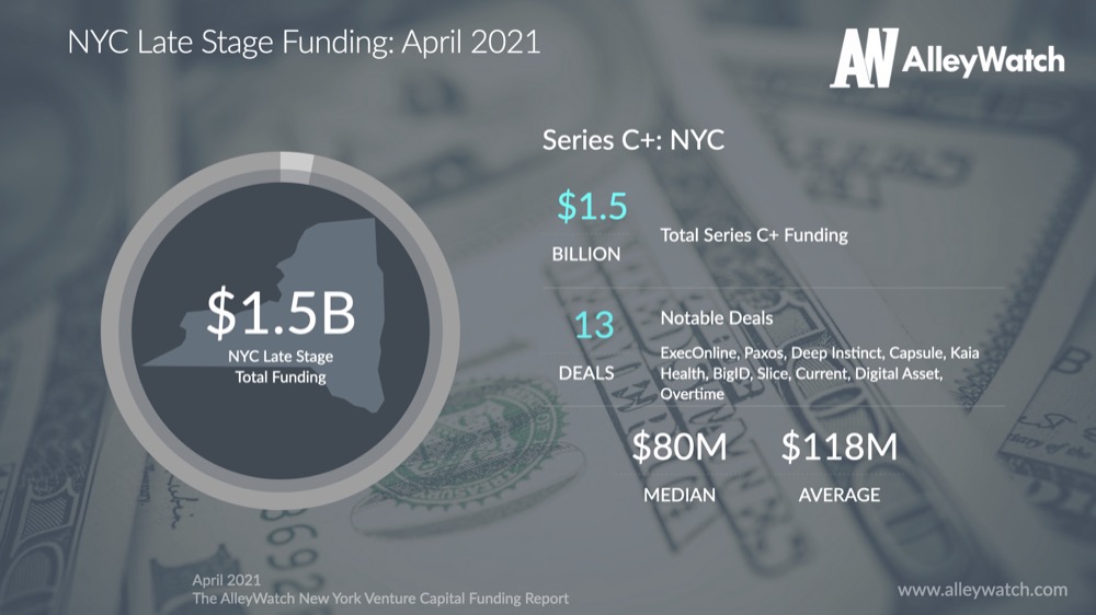 $1.5B was invested across late-stage rounds in NYC in April Tweet This
