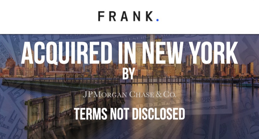Frank, the college financial planning platform, is being acquired by JPMorgan Chase, as the bank looks to deepen its relationship with students. Terms of the transaction were not disclosed. We launched Frank to make college more accessible for students and their families, and have already helped millions across the nation,” remarked Charlie Javice, Frank Founder and CEO. “We look forward to joining the Chase family to further this mission. Together, we can multiply our impact to help more students and their families achieve their financial goals and education dreams.”