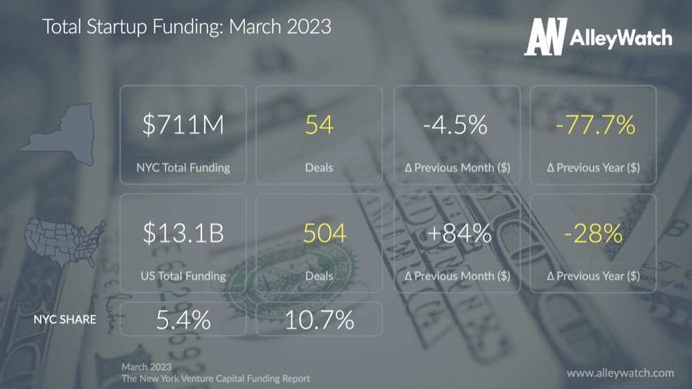 $711.4M was invested in NYC #startups in March in NYC across 54 deals Tweet This