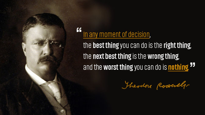 Theodore Roosevelt said, “In any moment of decision, the best thing you can do is the right thing, the next best thing is the wrong thing, and the worst thing you can do is nothing.”