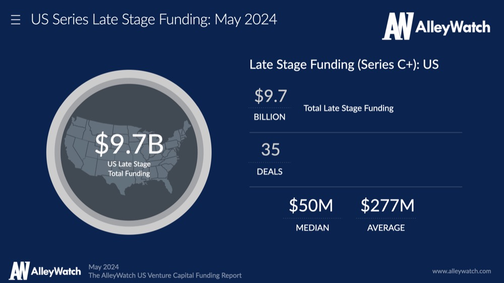 $9.7B was invested across Series C+ rounds in the US in May Tweet This