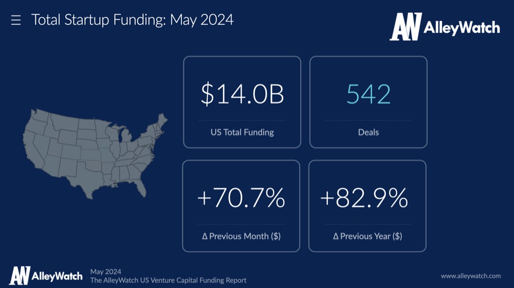 $14.0B was invested in startups in May in the US across 542 deals Tweet This
